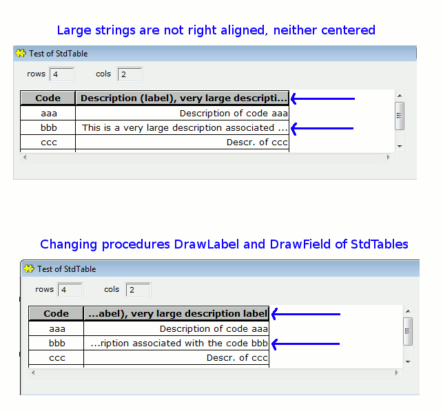 Problem: if the string shown in a cell of StdTables.Table is very large, the aligning to right or center does not work.